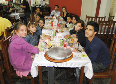 Sérgio Oliveira Barbosa/Raquel, o filho João Francisco, os sobrinhos Luís Felipe e Duda, com os amiguinhos Daniela, Ilka, Néia, Caio e Maria Laura, e Raiene e Leandro