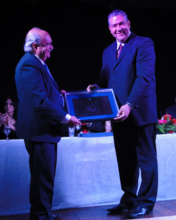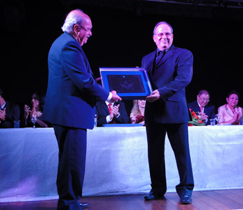 Antônio Pio do Carmo Tosta, que entregou placa a Camilo de Lélis Lima Sandoval, representando seu tio, o ex-presidente Alberto Benedito de Lima (in memoriam)