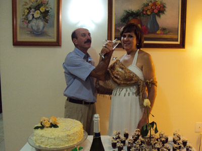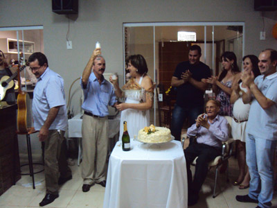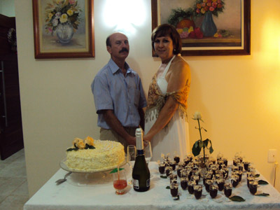 de união, de Paulo Roberto Henrique Santos e Regina Helena Souza Santos. Eles recebem os parabéns das filhas Liliana de Souza