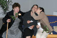 A aniversariante é beijada pelas irmãs Ivete e Carmelina