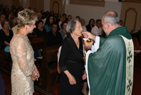 Dona Olinda, recebendo a comunhão na missa em Ação de Graças celebrada pelo Padre Vilmar Volpato