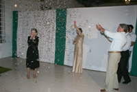 Recepção no salão de festas da APAE, com chuva de papel picado
