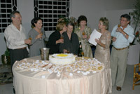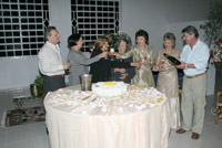 Os filhos Antonio Carlos, Maria José, Marirlanda, Etelvina, Katia Maria e Cavalcanti brindam com champanha o aniversário
