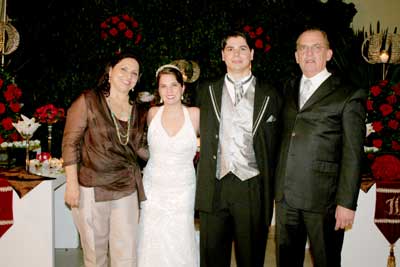 Casamento de Fernanda Luz Morgan de Aguiar e Leandro Machado Serrano - Foi realizado, no último sábado, dia 7 de fevereiro, o casamento de Fernanda Luz Morgan de Aguiar, filha do Dr. Alberto Morgan de Aguiar Neto e Maria Carolina Paula Luz Morgan Aguiar e Leandro Machado Serrano, filho de Antônio José Serrano e Creusa Helena Machado. As cerimônias civil e religiosa, bem como a recepção, aconteceram no salão de festas do Lions Clube. A suntuosa festa – que teve como cerimonialista Juliana Alves da Silva e equipe de Uberaba – contou com a decoração de Janaína Gibaile e arranjos da floricultura Grenda. O bufê foi servido pela equipe do Távola; bolo e doces foram confeccionados por Ítala, de Miguelópolis. A animação ficou a cargo de DJ Guilherme Correa e a iluminaçãoda Transa Som. Os convidados foram recepcionados por um quinteto de cordas da Elit Produções Musicais, de Uberaba, sob o comando de Eliezer Tiago Oliveira. Fernanda trajava um belíssimo vestido confeccionado por Collezione Alta Costura, de Franca. A maquiagem e o cabelo foram de Neuza Cabelo e Arte. Veja alguns flashes do evento, produzidos pela fotógrafa Carla Brunherotti: