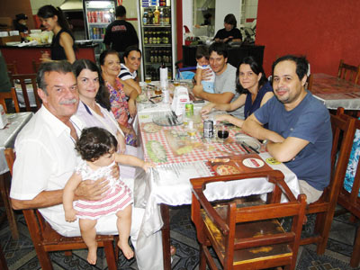 César Luiz Mendonça/Lúcia, com os genros Marcelo Nogueira/Carina, Seandro Duarte Esteve/Juliana, a filha Helena Moisés Mendonça e os netos César e Marina