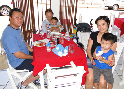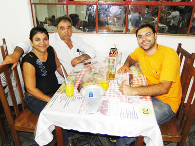 Edna Lopes, o neto Pedro Lucas e o filho Irineu Neto, com a namorada Júlia Ito