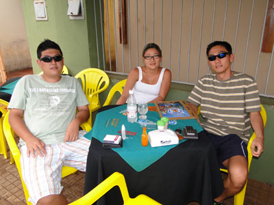 Rodrigo Maeda, a namorada Mari Okada e o irmão André Maeda