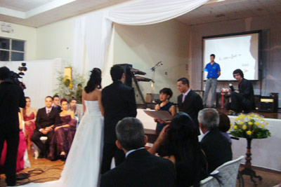 A celebração espírita foi conduzida pelos tios da noiva, Paulo César de Castro e Ione Márcia Mendonça de Castro. Em seguida, os noivos recepcionaram os convidados na Associação Nipônica Ituveravense (Kaikan). O salão de festas foi decorado por H Produções e a apresentação musical esteve a cargo da banda “Olhos Negros”, de Guará. Confira alguns flashes.