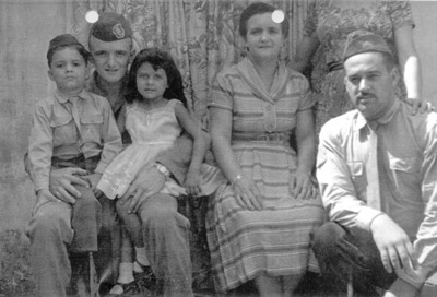 Em 1960, no encerramento do ano letivo do Tiro de Guerra 226, na residência do sargento Maciel, que era o comandante. (1) e (2) o atirador Airton Ferreira de Paula e sua mãe Tonília Ferreira de Paula, (3) o sargento Maciel, (4) e (5) filhas do sargento