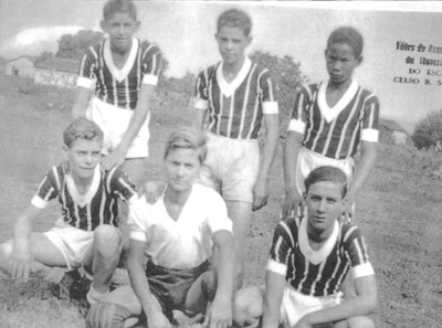 Equipe do São Paulo Futebol Clube, que em 1945 disputou um campeonato na cidade. Na foto os jogadores da defesa: (1) Ary Barbosa, (2) Orcalino_Franco, (3) João Quintino Pereira,