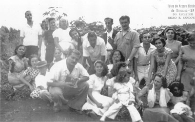 Foto de 1946 de um grupo de amigos. (1) Sylvio Contart, (2) Fauzi Cecílio, (3) Cida Neime, (4) Candita Garcia Prado (5) não identificada, (6) Suzana Lanna, (7) Jorge Nunes, (8) Assad Chaibub, (9) e (10) Augusto Montagnini e Wanda Matar Montagnini, (11) funcionário da Anderson Clayton, (12) Olga Lanna, (14) Genoveva Jacob, (15) Melina Jacob, (16) Cecília Neaime, (17) Jair Garcia Prado, (18) Tereza Contart (“Dona Tina’), (19) Muchir Miguel Francisco, (20) Dora, (21) e (22) Ivone Machado Cordaro e a filha Alzira Aparecida Cordaro Bucker, (23) Mariinha Contart Ferrari