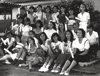 Formatura da turma de 1987, do CNA, antigo MAEC, escola de Inglês quando era comandada pela professora Alzirinha Machado Cordaro Bucker: (1) Otaclito Barbosa Neto (Taquinho), (2) Juliano Macedo Freitas, (3) Adriana Chiconelli, (4) Maria Eugênia Assef (de Miguelópolis), (5) Alzira Machado Bucker, (6) Márcia Freitas Oliveira, (7) Luciane Pereira, (8) Andréa Mota Menezes, (9) Fernanda Macedo, (10) Adriana Tormina Antunes, (11) Adriana Santos Perreira, (12) Simone Machetti Jabur, (13) Andréia Pereira de Souza, (14) Marcelo Rodrigues Seara Salata,(15) Alexandre Tormina Antunes, (16) Renato Aró Vardasca, (17) Priscila Piloto, (18) Ândrea Macedo de Freitas, (19) Adriana Rocha, (20) Fernanda Barbosa Lima,(21) Luciana Yanestiac Dornelhes, (22) Kátia