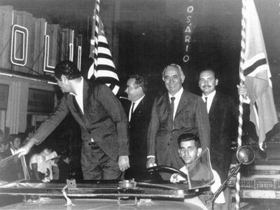 A foto de 1969, no primeiro mandato do médico Archibaldo Moreira Coimbra, do desfile das comemorações de 10 de Março, data da emancipação política do município de Ituverava. (1) o prefeito, (2) o deputado Hélvio Nunes da Silva (“Zitio”), (3) o agropecuarista dr. Paulo Borges de Oliveira, (4) o funcionário público municipal, Durval Dias de Oliveira (todos falecidos), (5) o jornalista José Maurício Amêndola