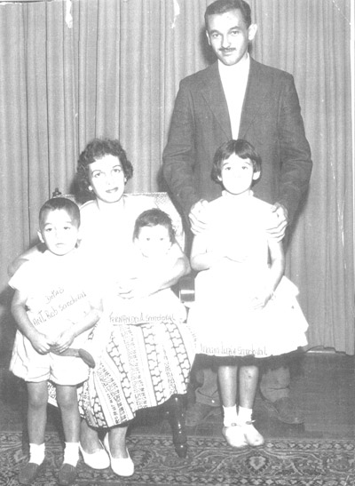 Foto do ano de 1959, da família Falleiros Sandoval. (1) e (2) os patriarcas, o agropecuarista Antônio Roberto Sandoval e a professora Placedina Falleiros Sandoval (“Didi”), e os filhos (3) Antônio Roberto Sandoval Filho, casado com Silvana Magno Sandoval, (4) Maria Luzia Falleiros Sandoval Morandini, casada com Antônio Alberto Morandini, (5) Maria Rita Falleiros Sandoval Matar, casada com Lauro Matar Filho. Na foto falta o filho Fernando Falleiros Sandoval, que ainda não era nascido