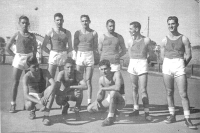 Equipe de bola ao cesto de Ituverava, que em 1947 foi campeã Regional, em competição disputada em São Joaquim da Barra. (1) Jesus Rodrigues (Capucha), (2) Talles Trigo,