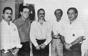 No dia 2 de agosto de 1991, o jornalista Adhemar Cassiano, diretor do jornal Tribuna de Ituverava, recebeu o diretor do Banespa, Nelson Mansine Nicolau. Na foto, (1) o assessor político Paulo Roberto de Freitas, (2) o gerente da agência de Ituverava, Álvaro Antônio Pinto, (3) o diretor regional do Banco, Salim Feres Sobrinho, (4) o jornalista Adhemar Cassiano e (5) o diretor Nelson Mansine Nicolau