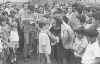 Foto de 1970, da premiação dos melhores jogadores da categoria Dente-de-Leite, em torneio realizado no campo da Associação Atlética Ituveravense, em homenagem aos 85 anos de emancipação política de Ituverava. (1) e (2) dona Georgete Chaebub Rodrigues, entrega uma medalha ao filho Luciano Rodrigues Chaebub (“Lolô), considerado o melhor do torneio, (3) a primeira-dama, Ada Vanucci Coimbra, (4) e (5) os radialistas João Bartochi Filho e Túlio Del Guerra, que também era funcionário do banco do Brasil
