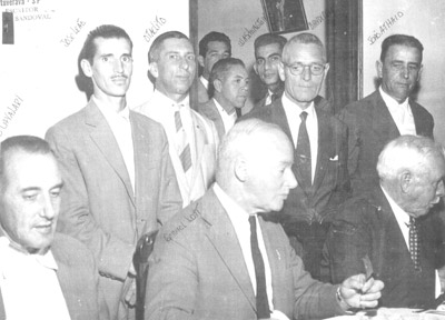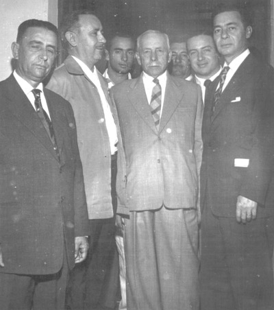 (4) cap. João Antônio Macedo, que era o maior líder político da época, (5) o comerciante José Baltazar Santiago, (6) o candidato o senador Amaral Furlan e (7) o candidato Auro de Moura Andrade