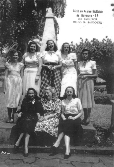 Foto na Praça 10 de Março, dos anos 50, das amigas; (1) Naza Abud, (2) Malina Jacob, (3) Odete de Paula, (4) Lili Barbosa Lima, (5) Aparecida Neaime,