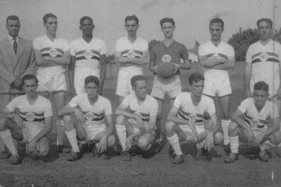 Foto dos anos 30, do time AFC, no campo da Associação Atlética Ituveravense. (1) Tonico Carroceiro, (2) Peres, (3) Enedino, (4) Cavalari,