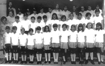 (1), (2) e (3) as professoras Maria Vicencina Lorecchio Dias, Natalina Bandiera Amêndola e Maria Eudália Coimbra Amêndola. Os alunos: Luciano Chaibub Rodrigues (“Lolô”), Wellington Leite, Paulo Leite, Cristina de Lima Coimbra, Márcia Sandoval, Adalgisa Vianna, Regina Leão, Jorge Mattar Neto, Ibraim Alexandre Júnior, Luiz Miguel Ribeiro Moyses, Fernando Falleiros Sandoval, Consuelo Lacerda Diniz, Nilce Barbosa, Eloiza Maria Leite, Madalena Brunelli, Maria do Carmo Avanci, Rafhael Sandoval Falleiros, Roberto Baltazar, Marciliano Batista Pereira, Cidinha dos Santos, Cristiane Carneiro, Solange Valle de Almeida, Vânia Moyses Chaibub, Vânia de Paula Costa, Maria Luiza Medina e Tome Kikuda