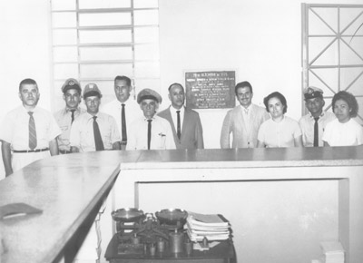 Inauguração do prédio da Agência dos Correios de Ituverava, onde funciona até hoje, à Rua Capitão Hilário Alves de Freitas: (1) o agente, Waldemar Torraca, (2) José Ignácio de Matos, (3) Antônio Ignácio de Matos, (4) Antônio de Paula Ferreira, (5) Antônio Galdiano, (6) Albino Fontebasse, (7) João Lino de Souza, (8) Lídia Garcia Prado, (9) Décio Carlos da Silva e (10) Rosa Pereira de Souza