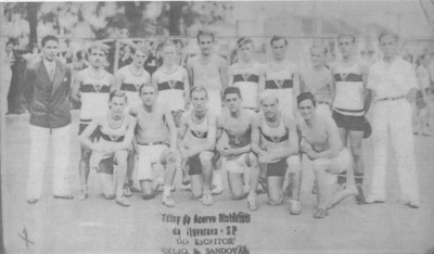 Time de Bola ao Cesto, do Centro de Cultura Física de Ituverava, em partida disputada em Ribeirão Preto, em 1933. Atletas identificados: Debinho, Rui de Lima, Núncio Bordom, Arlindo Bordom (“Batatinha”), Leopoldo, José Soares de Oliveira (“Zé Gallo”), os irmãos Luiz e Moacir França e Eduardo de Oliveira (“Canindé”)