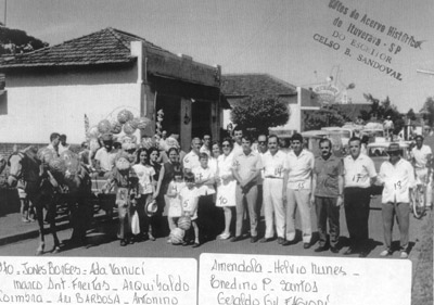 Foto de 1970, quando autoridades faziam a entrega de presentes, do projeto social “Natal dos Pobres”. (1) e (2) o então prefeito e a primeira-dama, Archibaldo Moreira Coimbra e Ada Vanucci Coimbra, (3) o deputado estadual Hélvio Nunes da Silva (“Zito”), (4), (5), (6) e (7) os vereadores Jones Borges do Nascimento (“Didico”), Marco Antônio Bento de Freitas, Ary Barbosa e Antonino Amêndola, (8) Enedino P. Santos, (9) o bancário Geraldo Gil Fagioni