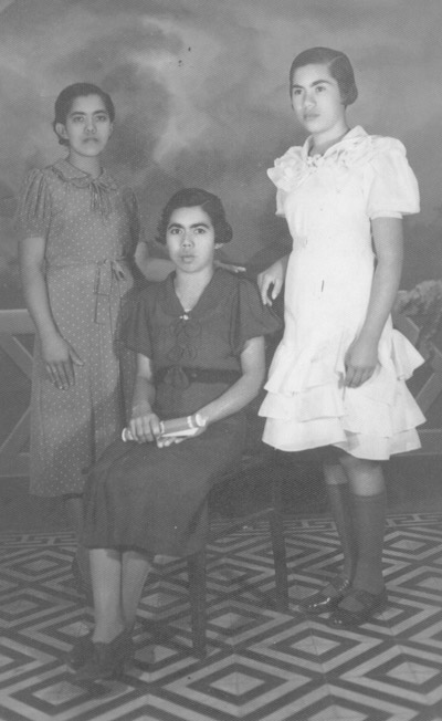Foto de 1934, de Cecília Pereira de Souza, Maria Pereira de Souza e Itaci Pereira de Souza, filhas do sr. Florindo Pereira de Souza.