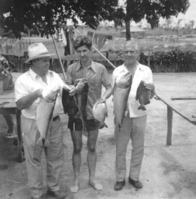 Foto dos anos 1982, de uma pescaria no Mato Grosso. (1) José Cândido de Paula (“Juquinha”), (2) Nelson Santo Brunheroti, (3) Ernesto Chiconeli (“Ernestinho Barbeiro”)