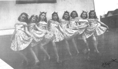 Festa em comemoração ao dia 7 de Setembro de 1943, do Grupo Escolar Fabiano Alves de Freitas. Alunas do 4º ano primário da professora Elza Perro Viana. (1) Rute Célia Bianca Lana, (2) Elza Telles Falleiros,