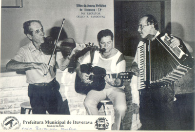 Foto dos anos 80, do saudoso conjunto “Serenata”, formado pelos músicos: (1) Filipe Antônio Liporaci (“Coco”), que tocava violino, (2) Raimundo Nonato, violão e voz, e (3) José Manfrim, acordeom