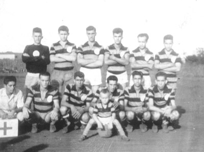 Foto dos anos 60, da equipe dos Mecânicos Unidos, que cujo campo era na Praça das Bandeiras, onde é hoje a Praça Odilon Teixeira (Mãe Rainha). (1) Airton Munhoz (“Perereca”), (2) Chiringa, (3) José Lavrador, (4) Francisco Liporaci Neto (“Chiquinho”), (5) Edson Pereira (“Edson Sapateiro”), (6) Dolisor, (7) o massagista Totonho, (8) Bichinho , (9) Vilmar (jogou na equipe do Votuporanguense quando estava no auge), (10) Valdemir (“Cinquinho”), (11) Ganso e (12) Atílio Mendes Lopes.