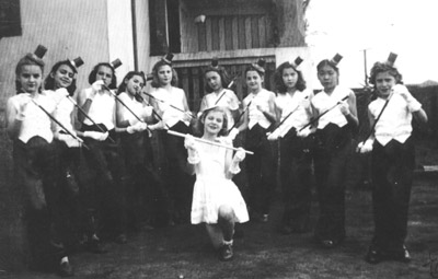 Festa em comemoração ao dia 7 de Setembro de 1943, no Grupo Escolar Fabiano Alves de Freitas. Alunas do 4º ano primário da professora Elza Perro Viana. (1) Ana Vera Shanderis, ((2) Zoé Rodrigues Alves, (3) Placedina de Freitas Falleiros, (4) Elza Telles Falleiros, (5) Elza Borzani, (6) Ruth Célia Biancalana, (7) Nágela Abdalla Jugdar, (8) Julieta Barbosa de Freitas, (9) Hasine Kawano, (10) Zélia Nunes da Silva e (11) Maria Inez Faria