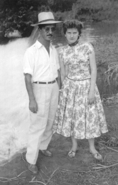 O casal Jorge Elias (in memoriam) e Leontina Baptista Elias em foto de 1956, na Cachoeira Salto Belo. São seus filhos Jorge Elias, arquiteto, casado com Lucila Trajano Telles Elias; a psicóloga, Solange Elias Golmia, casada com Névio Grace de Abreu Golmia (in memoriam); Liane Elias Falleiros, biomédica, casada com Paulo Roberto Falleiros e a administradora de empresas, Marize Elias Buck, casada com José Renato Buck