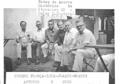 A foto provavelmente é dos anos 70, dos irmãos (1) Rubens França, (2) Luiz França, (3) Joaquim França (“Quico”), (4) Moacir França, (5) Antônio França e (6) José Paulo França. Eles são filhos do jornalista Humberto França e de Catarina Bombig França
