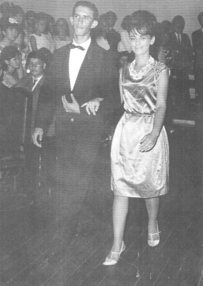 Foto de 1966, da solenidade de formatura em Técnico em Contabilidade, do Colégio Comercial Nossa Senhora do Carmo, de José Roberto de Paula (“Carioca”), que entrou no salão com a prima Maria Justina Barbosa Campos (ambos falecidos).