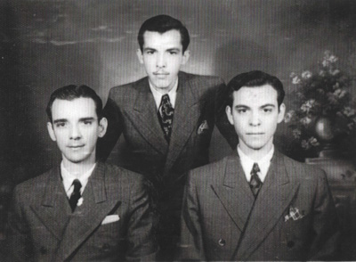 Foto dos anos 50, dos amigos. (1) João Flauzino Barbosa Sandoval Júnior, (2) e (3) os irmãos José Mirandola e Guido Mirandola, todos já falecidos