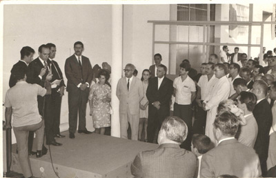 Foto do ano de 1966, da inauguração da Dacar Automóveis e Representações, revendedora Wolksvagen, que era instalada onde hoje é a VM Acessórios, (1) e (2) o prefeito Orlando Seixas Rego e sua esposa Zélia Nunes da Silva Rego, (3) e (4) os proprietários da empresa, que eram de Franca, (5) não identificado, (6) o vereador João Athayde de Souza, (7) o cartorário Donato Colani, (8) o padre Ângelo D’ Alara, (9) o gerente da agência do Banespa de Ituverava, Perci De Carly, (10) José Simino, que era agente da CPFL, (11) o cartorário Luiz Amêndola, (12) o empresário Assad Chaebub