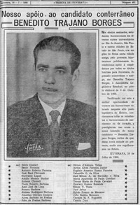 No dia 19 de julho de 1958, foi realizado um abaixo-assinado apoiando a candidatura do “conterrâneo” Benedito Trajano Borges a deputado estadual. Ele foi um dos políticos mais atuantes de seu tempo