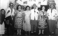 Festa caipira realizada na sede social da Associação Atlética Ituveravense, provavelmente em 1.954. (1) Sirlei Tosta, (2) Jorge Jacob Cury (“Pracinha”);
