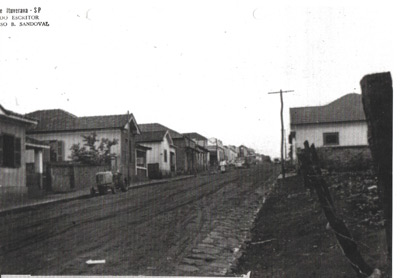 Foto de Ituverava em 1920, da Rua Cel. Irlandino Barbosa Sandoval (do Hotel Jandaia), que não era asfaltada, toda lameada, os postes eram de madeira, e era pouco movimentada