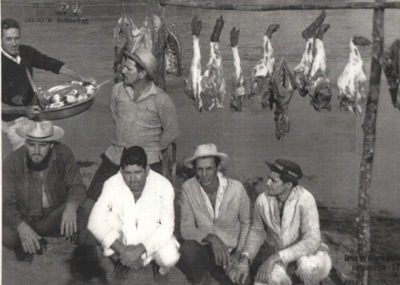 Foto dos anos 60, de uma pescaria e caçada no Mato Grosso, que na época era aberta. (1) Felipe Liporaci (“Coco”), (2) Marcionílio Rodrigues Souza, (3) Felipe Liporaci Neto (“Titióla”), (4) Ar y Barbosa, (5) José Ribeiro (“José Canelão”) e (6) Joaquim Lacerda