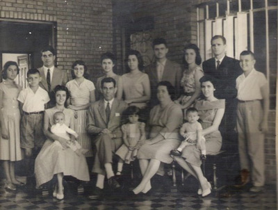Foto de 1958, da família Nogueira. (1) e (2) os patriarcas Daniel Nogueira e Irma Ferreira Nogueira, (3) e (9) Maria Irma Nogueira Silva (“Miminha”) e Urias da Silva, (4) e (16) Maria Auxiliadora Nogueira Bombig (“Bijurinha”) e Fábio Bombig, (5) Fábio Bombig Filho, (6) Maria Tereza Nogueira Bombig, (7) Elora Nogueira Ignácio, (8) Luiz Sérgio Nogueira, (10) Maria do Carmo Nogueira, (11) Gilda Nogueira, (12) – Carmem Maria F. Nogueira Macedo, (13) Daniel Nogueira Filho, (14) Vânia Nogueira (in memoriam) e (15) Fernando Nogueira , (17) Urias Silva Filho