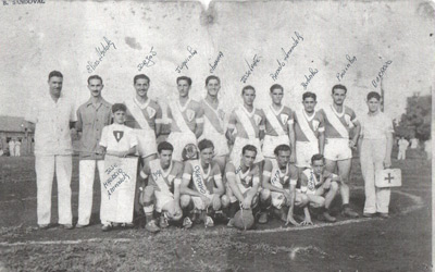Foto doa ano 40, do Internacional de Ituverava, no campo da Associação Atlética Ituveravense. (1) Soares, que trabalhava em uma empresa na cidade, (2) Elias (“Zito”) Abdala, (3) Jorjão, (4) José Ferreira Neto (“Dr. Juquinha”), (5) Antônio Jacob Cury (“ Chanca”), (6) José de Paula Leão,
