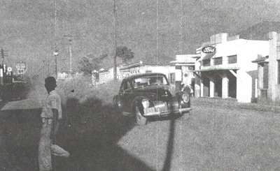 Foto de 1940, quando um automóvel transitava pela Avenida Francisco Glícério, hoje Dr. Soares de Oliveira, em frente a então Agência Ford (hoje onde está sendo construído um prédio, em frente a Agência 2 do Banco do Brasil, quando as ruas da cidade não tinham calçamento, ou seja, os paralelepípedos.