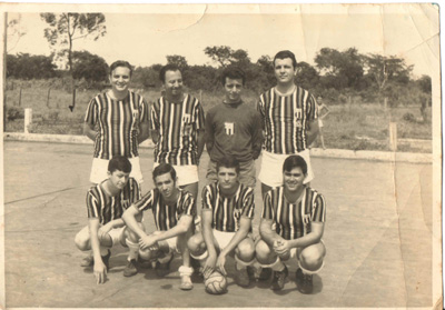 Foto do início dos anos 70, do time de futsal do Banespa (hoje Santander), na quadra da Associação Atlética Ituveravense. (1) Antônio Carlos Prévide (in memoriam), (2) Edson Gonçalves Arcanjo, (3) Lelces Antônio Inácio, (4) Geraldo Gil Faggioni, (5) Ney Jorge de Oliveira (in memoriam), (6) Luiz Augusto Lana Costa, (7) João Peixoto e (8) Valdeci, que era de Franca