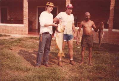 Foto de 1984, de pescaria no Coxim. (1) Antônio Carlos Rodrigues (“Tatai”),(2) Geraldo Euripedes Menezes e (3) Manoel Lopes Corrêa Filho