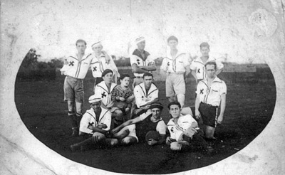 Foto de 1931, da equipe de Futebol da Sociedade Recreativa Liga Operária, cuja sede social ficava à Rua Cap. Ribeiro dos Santos, ao lado da Tina Boutique.