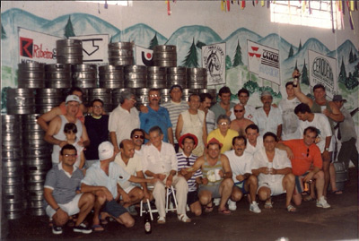Festa dos organizadores da Festa do Chope, promovida pela Apae no ano de 1995, no antigo prédio da Indústria Mantovani. (1) Alpheu Medina Bucker (in memoriam), (2) Dr. Veimar Carlos Ducatti, (3) Dilermando Duarte, (4) José Carlos Rezende,